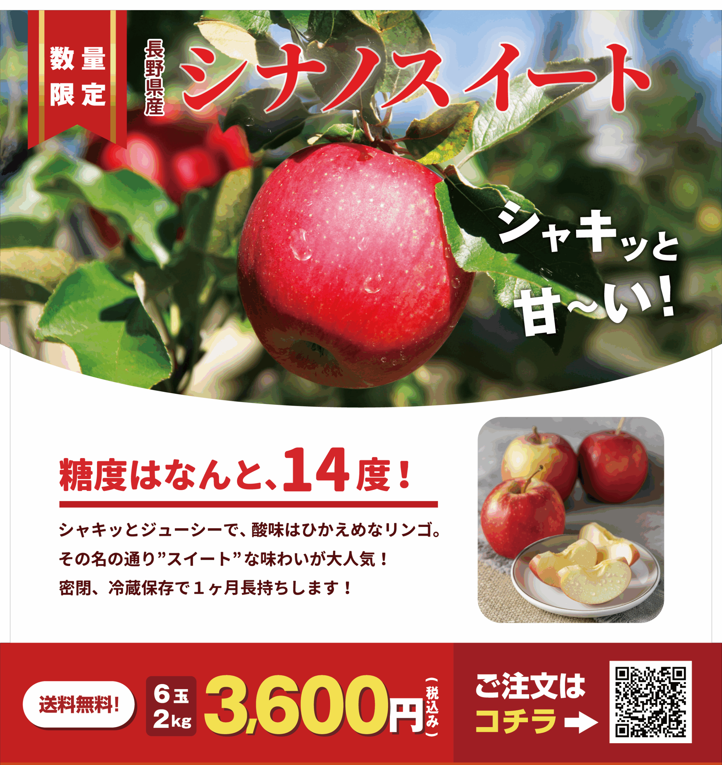 その名の通り長野県生まれのりんごで、甘くて果汁が多い「ふじ」と「つがる」を交配して誕生しました。